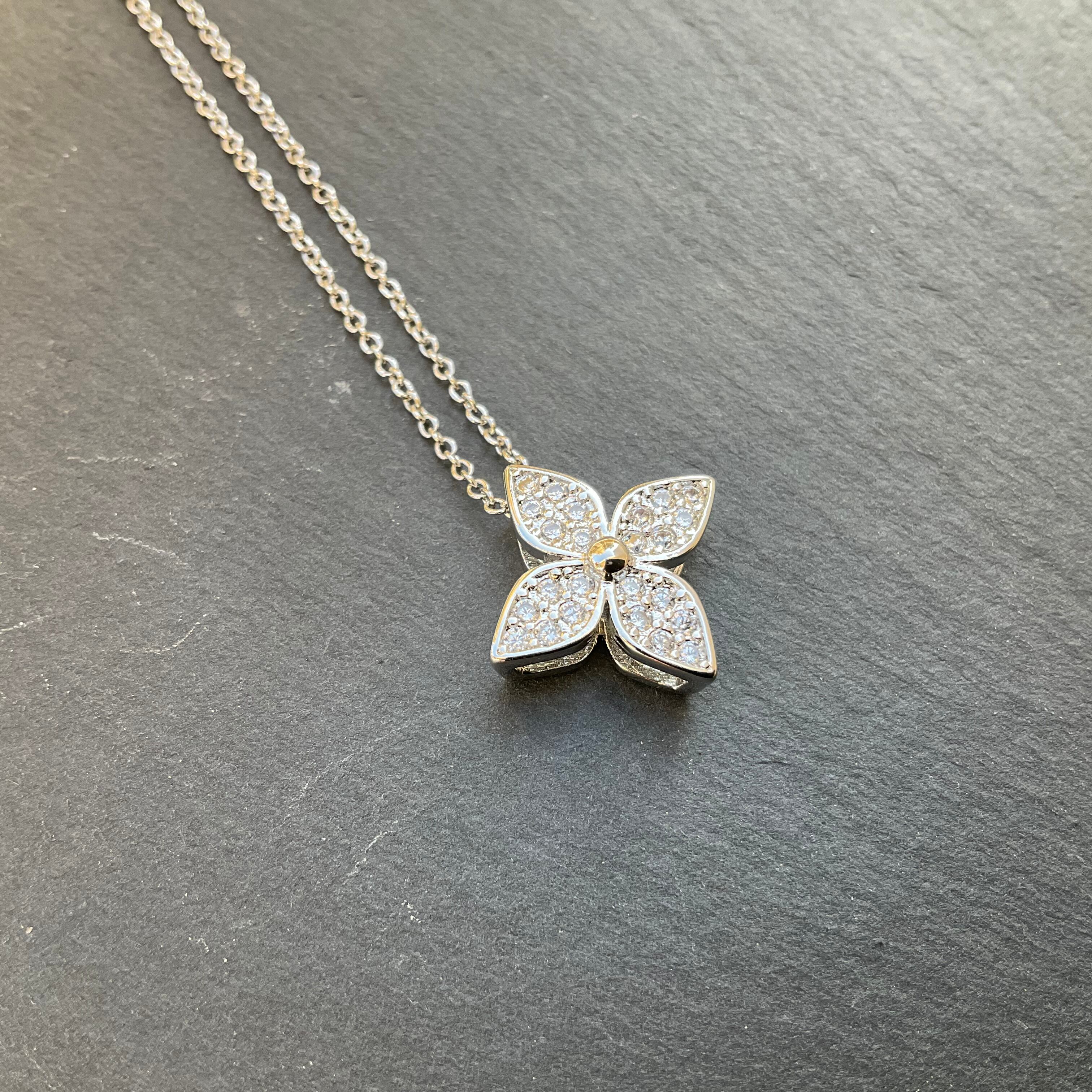 zirconia flower necklace silver